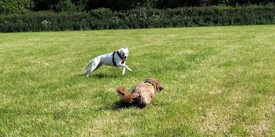 I offer ½ hour or 1 hour walks for your dogs, walking them from your house and returning them happy and refreshed afterwards. I always keep your dogs on the lead, unless you have given me permission to let them off the lead. I also try to vary the walks so that your dogs get a change of scenery and I will also stimulate your dog with toys and basic training if you wish.